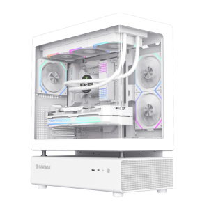 Gamemax N80 White Gaming PC Case — Step into the future of gaming with the Gamemax N80 BK, a perfect fusion of modular design and sleek aesthetics. •Detachable Modular Design: Easily upgrade and customize your setup. •Integrated Curved Glass: Showcase your components with a seamless,stylish front panel. •Panoramic Interior View: Enjoy a full view of your hardware for a satisfying build experience. •Comprehensive Cooling: 270 coverage with 6 ARGB fans for optimal performance. •ARGB Sync: Create custom lighting effects that match your gaming mood. •Vertical GPU Mount: Showcase your graphics card with enhanced cooling and style. •Innovative GameMax Design: Elevate your gaming setup with a bold, eye-catching case.