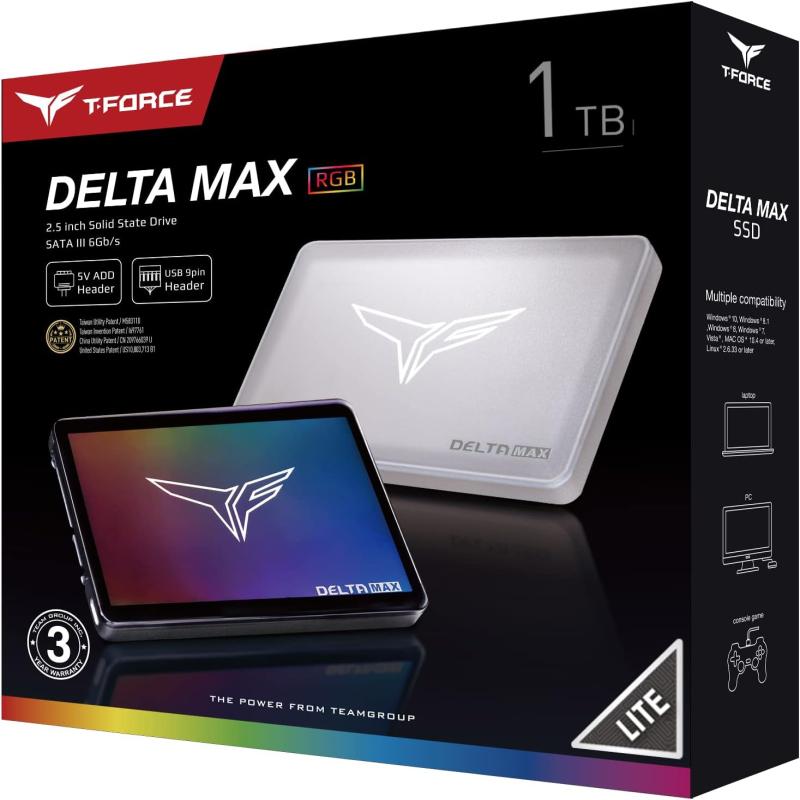 1TB TEAMGROUP T-Force Delta MAX Lite(Dramless) White ARGB with 3D NAND TLC 2.5 Inch SATA III Internal SSD (R/W Speed up to 550/500 MB/s) T253TM001T0C425