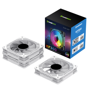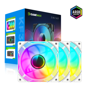 GameMax KF300 WH, 120mm White frame ARGB Fan 3 in 1 Kit, Along Includes Premium V4.0 ARGB HUB with Wireless Remote Controller - High-Performance Cooling Fan for PC Case •【Intelligent Speed Control】3 pcs 120mm full function ARGB PWM fans •The intelligent temperature controls the speed at 800~1600±10% RPM, by linking to the motherboard PWM 4pin socket, so the fan speed auto controlled and keeps the fans quiet •These fans are 3pin 5v ARGB connectors that connect with ARGB control HUB one by one •【Inner And Outer Light】Addressable RGB LEDs can be controlled by ARGB remote controller(Included package), Multiple ARGB light modes and speeds, provide colorful streamer lighting effects •creating a practical and beautiful cooling system •You also can turn on / off the fan light effect and switch the fan hub ARGB signal to the motherboard 5V ARGB port by AURA Sync Mode •【Shockproof Design】The fan frame is fixed on both sides with 8 pieces of shock-absorbing rubber pads •The rubber soft material which is not easy to peel off has a good shock-absorbing effect, which can make the internal operation of the computer case stable and reduce the noise output between the fan and the computer case •The maximum noise of the fan is only 31dBA •【V4.0 ARGB HUB-PWM | 5V ARGB Sync】Remote Control multi-featured hub, Magnetic design for easy installation, the magnet at the bottom of the controller can be firmly attached to the metal plate of the chassis, making installation easy!